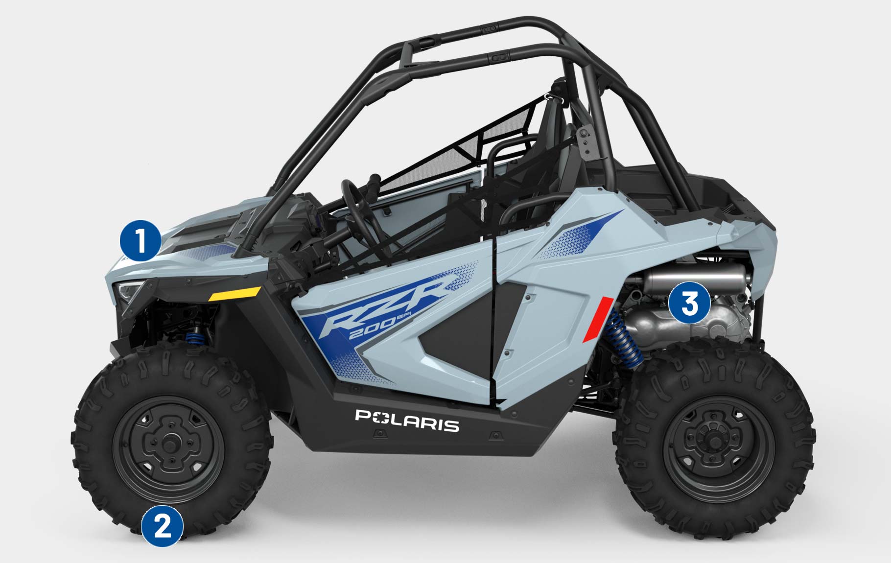 Le RZR 200 accompagne vos enfants de 10 à 16 ans tout au long de leur progression grâce au moteur EFI de 180 cm3, au siège et volant réglables, le siège passager et les accessoires en option.